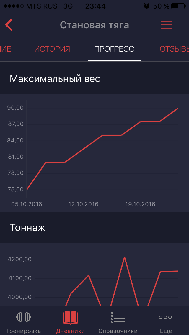 Оценивайте ваш прогресс в тренировках и их эффективность с помощью наглядных графиков